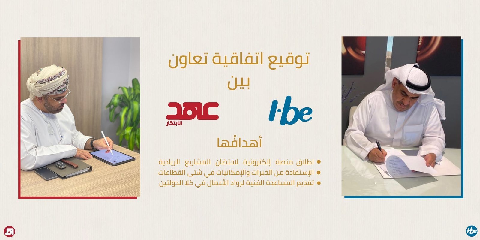 تم الإعلان عن توقيع اتفاقية بين حاضنة i-be وشركة عهد الابتكار والتطوير و الاستثمار العمانية .