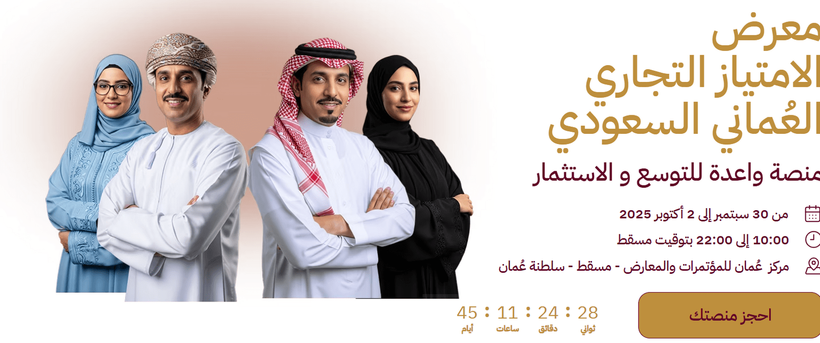 في خطوة نوعية لتعزيز التعاون الاقتصادي بين سلطنة عُمان والمملكة العربية السعودية، تستضيف العاصمة مسقط “معرض الامتياز التجاري العُماني السعودي” في الفترة من 30 سبتمبر إلى 2 أكتوبر 2025، بمركز عُمان للمؤتمرات والمعارض، بمشاركة واسعة تتجاوز 120 شركة وعلامة تجارية، وأكثر من 5000 زائر من داخل السلطنة وخارجها.