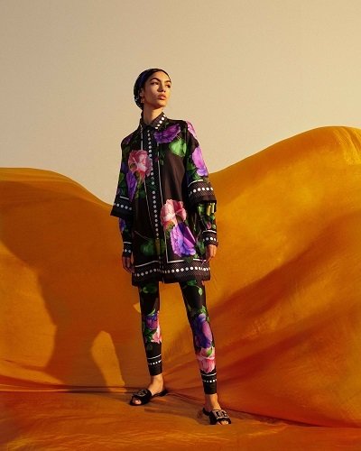 ﻭﻳﻤﺜـــﻞ ﺳـــﺤﺮ ﺿـــﻮء ﺍﻟﺸـــﻤﺲ، ﻭﺍﻟﺘـــﺪﺭﺟﺎﺕ ﺍﻟﻠﻮﻧﻴـــﺔ ﺍﻟﻤﺘﻘﺎﺭﺑـــﺔ ﺍﻟﻤﺴـــﺘﻮﺣﺎﺓ ﻣـــﻦ ﺍﻷﺣﺠــﺎﺭ ﺍﻟﻜﺮﻳﻤــﺔ، ﻭﺭﻗــﺔ ﺍﻟﻄﺒﻴﻌــﺔ ﺍﻟﺘــﻲ ﺗﺘﺠﻠــﻰ ﻓــﻲ ﻁﺒﻌــﺎﺕ ﺍﻷﺯﻫــﺎﺭ ﺍﻟﻤﺘﻔﺘﺤــﺔ، ﺍﻟﺴﻤﺎﺕ ﺍﻷﺳﺎﺳﻴﺔ ﻟﻠﺘﺸﻜﻴﻠﺔ ﺍﻟﺘﻲ ﺗﺪﻭﺭ ﻓﻲ ﻓﻠﻚ ﺍﻷﻧﻮﺛﺔ.ﻭﺗﻀــﻢ ﺍﻟﺘﺸــﻜﻴﻠﺔ ﻓﺴــﺎﺗﻴﻦ ﺍﻟﺸــﻴﻔﻮﻥ ﺍﻟﻤﻨﺴــﺪﻟﺔ، ﻭﻗﻤﺼــﺎﻥ ﺍﻟﺒــﻮﺑﻠﻴﻦ، ﻭﻛﻨــﺰﺍﺕ ﺣﺮﻳــﺮ ﺗﺸـــﺎﺭﻣﻴﻮﺯ. ﻭﺗﺘﻤﻴـــﺰ ﺑﺄﻗﻤﺸـــﺘﻬﺎ ﺍﻟﺘـــﻲ ﺗﺴﺘﺤﻀـــﺮ ﺟﻤـــﺎﻝ ﺃﻟـــﻮﺍﻥ ﺍﻷﺣﺠـــﺎﺭ ﺍﻟﻜﺮﻳﻤـــﺔ ﺍﻟﻄﺒﻴﻌﻴـــﺔ­ ﻣﺜـــﻞ ﺍﻟﻴﺸـــﻢ ﺍﻷﺧﻀـــﺮ، ﻭﺍﻟﺰﺑﺮﺟـــﺪ، ﻭﺍﻟﻜـــﻮﺍﺭﺗﺰ ﺍﻟـــﻮﺭﺩﻱ­ ﻭﺗـــﺰﺩﺍﻥ ﺑﻄﺒﻌـــﺎﺕ ﺍﻟــﻮﺭﻭﺩ ﻟﺘﺴﺘﺤﻀــﺮ ﺃﻧﺎﻗــﺔ ﺍﻷﻭﺷــﺤﺔ ﺍﻟﻤﺰﺧﺮﻓــﺔ. ﻭﺯﻳﻨــﺖ ﺍﻷﻧﻤــﺎﻁ ﻧﻔﺴــﻬﺎ ﺍﻟﻘﻄــﻊ ﻏﻴــﺮ ﺭﺳــﻤﻴﺔ ﻣﺜ ــﻞ ﻗﻤﺼ ــﺎﻥ ﺍﻟـــ "ﺗ ــﻲ ﺷ ــﻴﺮﺕ" ﺍﻟﻤﻮﺷــﺎﺓ ﺑﻄﺒﻌ ــﺎﺕ ﻣﻤﻴ ــﺰﺓ، ﻭﺍﻟﺴـــﺮﺍﻭﻳﻞ ﺍﻟﻀــﻴﻘﺔ، ﻭﺍﻟﺒﻠــﻮﺯﺍﺕ ﺍﻟﻮﺍﺳــﻌﺔ. ﻭﻳﺘﺠﻠــﻰ ﺗﻤﻴــﺰ ﺍﻟﺘﺸــﻜﻴﻠﺔ ﻓــﻲ ﺇﻛﺴﺴــﻮﺍﺭﺍﺗﻬﺎ: ﻣﺜــﻞ ﺣــﺬﺍء "ﺑﻮﺭﺗﻮﻓﻴﻨــﻮ" ﺍﻟﺮﻳﺎﺿــﻲ ﺍﻟﻤﻮﺷــﻰ ﺑﻠﻤﺴــﺎﺕ ﺫﻫﺒﻴــﺔ، ﻭﺃﺣﺬﻳــﺔ "ﻣﻴــﻮﻝ" ﺍﻟﺠﻠﺪﻳــﺔ ﺍﻟﻤﻐﻄــﺎﺓ ﺑﺎﻟﻜﺮﻳﺴــﺘﺎﻝ ﺍﻟﺤــﺮﺍﺭﻱ، ﻭﺍﻷﺣﺬﻳــﺔ ﺍﻟﻤــﺰﻭﺩﺓ ﺑﺤــﺰﺍﻡ ﻳﻠــﻒ ﺍﻟﻜﺎﺣــﻞ ﻣــﻦ ﺟﻠــﺪ ﺍﻟﻌﺠـﻞ ﺫﻭ ﺍﻟﻠـﻮﻥ ﺍﻟﻌﻨـﺎﺑﻲ ﻭﺍﻟﻤﺰﺩﺍﻧـﺔ ﺑﺸـﻌﺎﺭ DG   ﻣﻌـﺪﻧﻲ ﺫﻫﺒـﻲ. ﻛﻤـﺎ ﺗﺄﻟﻘـﺖ ﻛـﻞ ﻣـﻦ ﺣﻘﻴﺒــﺔ "ﺳﻴﺴــﻴﻠﻲ" ﺍﻷﻳﻘﻮﻧﻴــﺔ ﻭﺍﻟﺤﻘﺎﺋــﺐ ﺍﻟﺘــﻲ ﺗﺤﻤــﻞ ﺷــﻌﺎﺭ   DG    ﺑــﻨﻔﺲ ﺗــﺪﺭﺟﺎﺕ  ﺍﻷﻟﻮﺍﻥ، ﻭ رُﺻﻌﺖ ﺑﺄﺣﺠﺎﺭ ﺍﻟﻜﺮﻳﺴﺘﺎﻝ ﺍﻟﻤﻠﻮﻧﺔ.